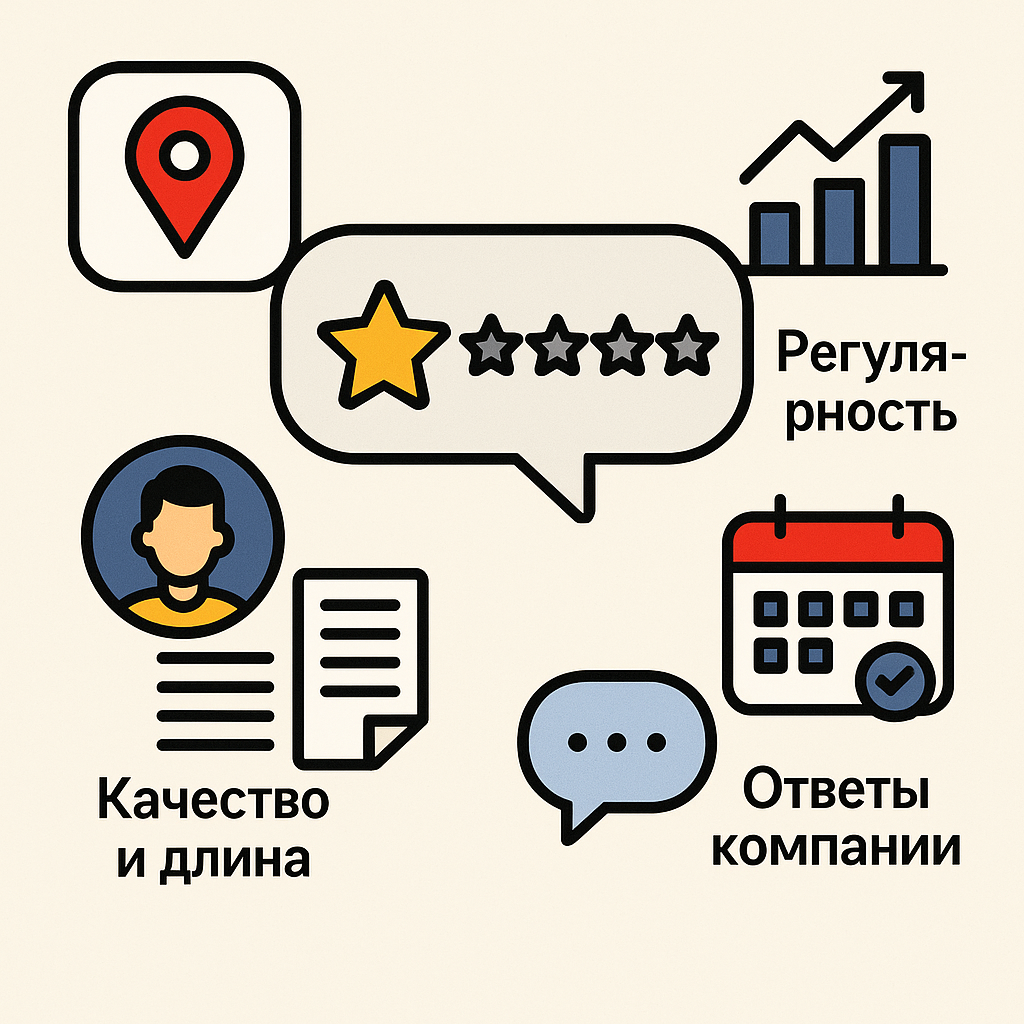 Отзывы — один из важнейших факторов доверия в Яндекс Картах. Они влияют не только на мнение потенциальных клиентов, но и напрямую на ранжирование карточки в поиске. Однако важна не просто "куча звёздочек", а качество, свежесть и естественность фидбека.